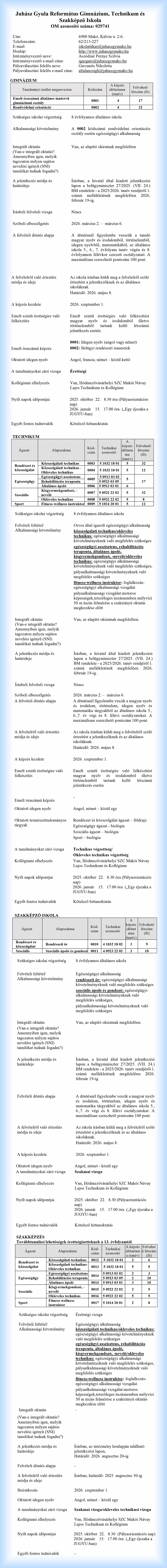 Írásban, az intézmény honlapján található jelentkezési lapon, Határidő: 2024. augusztus 15-ig |